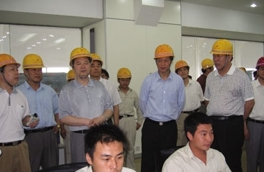 2005年7月14日,省委副书记冯敏刚到江苏森达陈家港热电有限公司视察企业党建工作,对企业开展的保先教育给予了充分的肯定,图为省领导与盐城市委书记张九汉,森达集团总裁、党委书记朱相桂,森达热电总公司总经理、党总支书记闵长高等亲切交谈。
