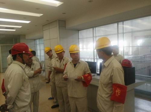 8月24日16:24,建湖公司主控室内警铃声响,锅炉监盘徐海婴汇报:“#3炉引风机电流增大,炉膛正压严重。”值长乔广华立即令:“#3炉减负荷运行,电气、汽机做好配合工作。”各班组接到演习组给出第一个异常现象后,全部进入演习状态。锅炉人员高峰、陈忠拿好对讲机,分别跑到主控室到引风机现场和13米层给料皮带处检查,电气人员卞正玉按照班长指令对#3炉风机变频器小室进行检查。16:34演习组给出第二个异常现象:“#2机低负荷真空下降”,汽机班人员在班长付成贤的指挥下,紧张有序地对真空系统逐一检查,通过检查发现是由于汽轮机抽汽系统一阀门有轻微漏的现象,立即汇报给值长乔广华。在20分钟后,经各班组的正确处理后负荷稳定,机组运行正常,演习组指挥生产部徐经理发令“演习结束”。