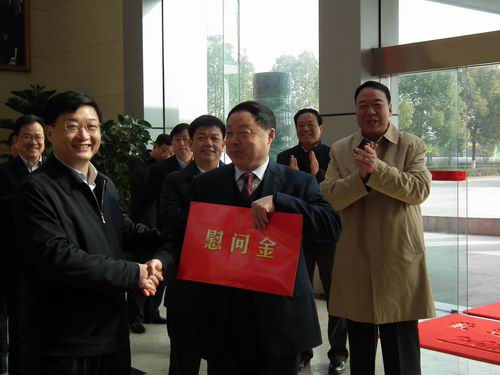 2月17日上午,建湖县委书记葛启发、县长薛盛堂等四套班子领导专程来到森达热电建湖公司,亲切慰问热电员工。
