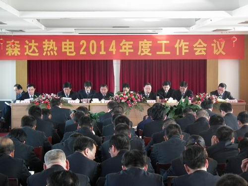 森达热电总公司2014年度工作会议于元月23日下午在总部五楼会议室隆重召开。这次会议的主要任务是:认真总结过去一年取得的成绩,分析当前面临的形势,部署新一年目标任务,明确抓落实的措施,进一步团结带领全体员工,谦虚谨慎,永葆激情,携手并肩,再展宏图,用优异成绩为森达热电新的十年开好头,起好步,为做大做优做强热电产业而不懈奋斗!总公司领导班子成员,各公司总经理、副总经理,机关各部门全体工作人员,受表彰的先进集体和先进个人以及部分专工、员工代表,共120多人参加了会议。